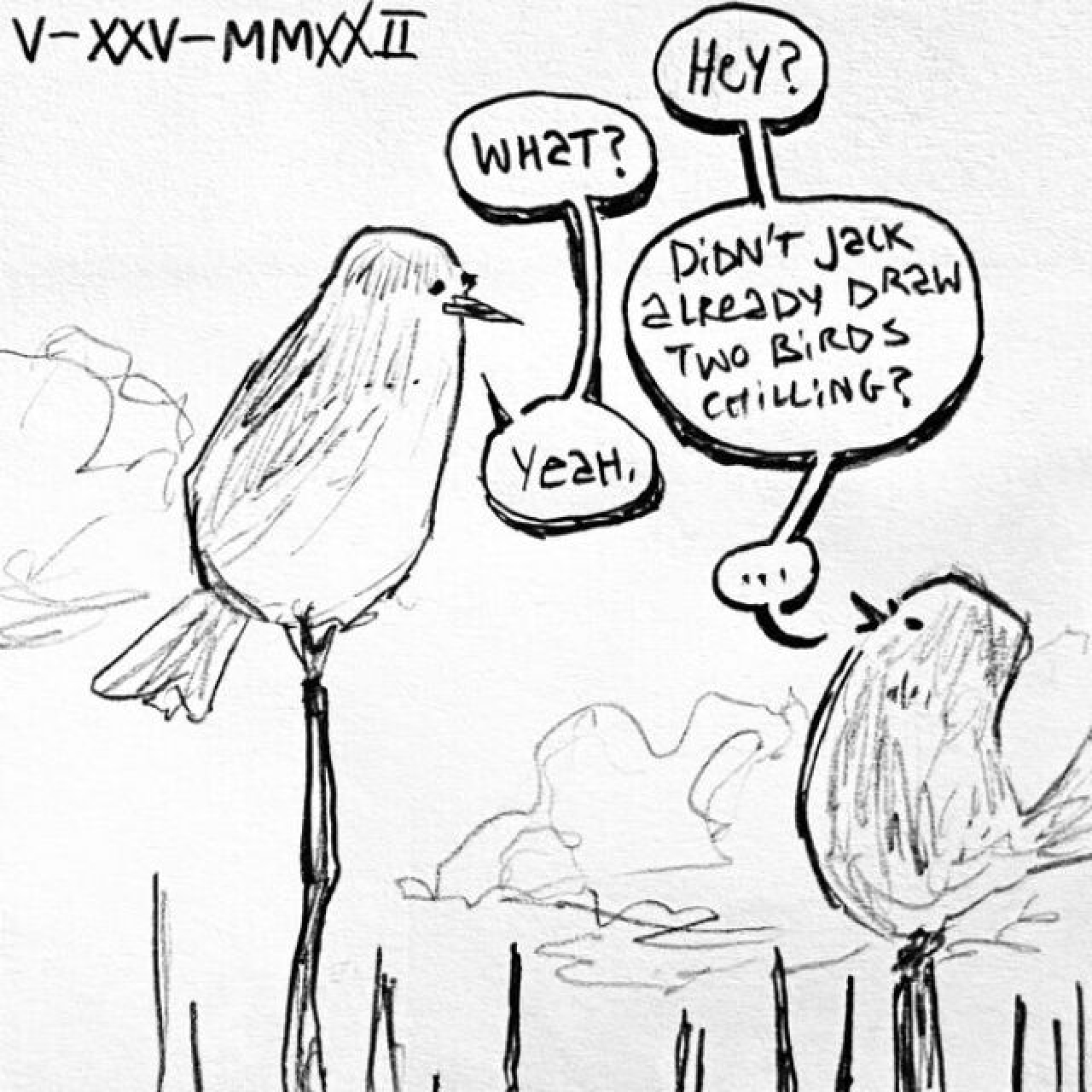 two birds on some sticks